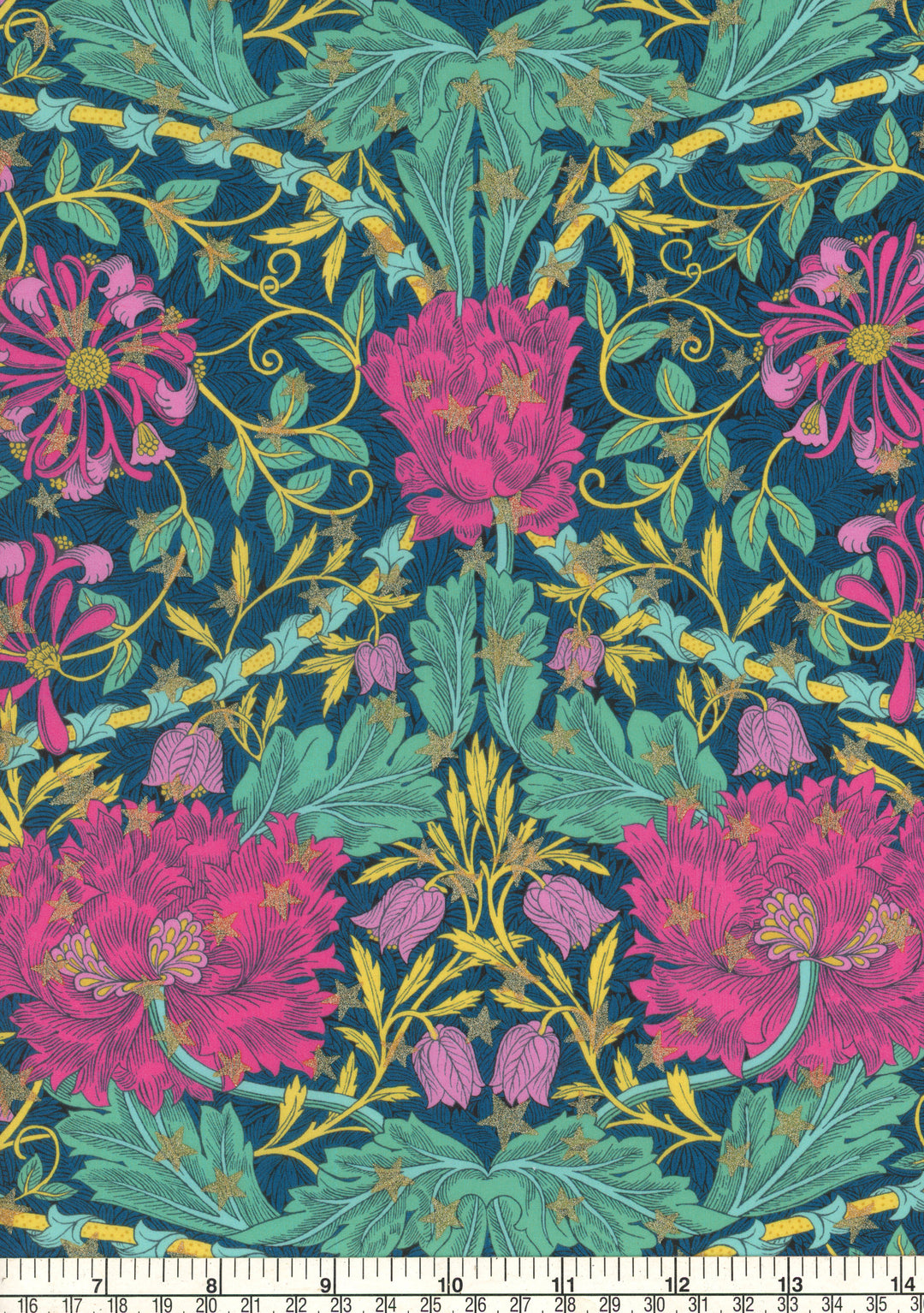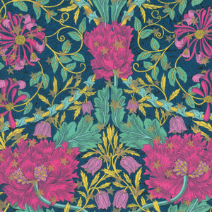 A true heritage treasure, March, was inspired by William Morris’ popular 1876 ‘Honeysuckle’ print. Reimagined for the festive season, March Sparkle’s floral trails decorated with stylised tulips, blooming honeysuckle, and dense, intricate foliage has been enhanced with a delicate metallic star overlay. Chosen for its timeless appeal and exquisite Arts & Crafts aesthetic, this majestic pattern is a botanical celebration of nature’s treasures.