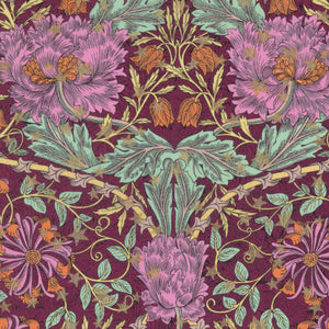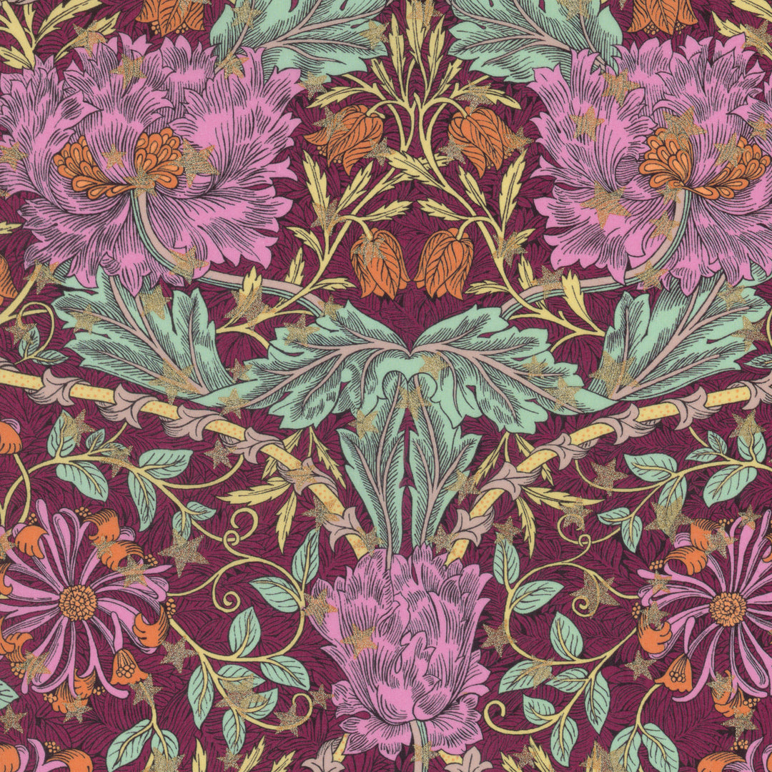 A true heritage treasure, March, was inspired by William Morris’ popular 1876 ‘Honeysuckle’ print. Reimagined for the festive season, March Sparkle’s floral trails decorated with stylised tulips, blooming honeysuckle, and dense, intricate foliage has been enhanced with a delicate metallic star overlay. Chosen for its timeless appeal and exquisite Arts & Crafts aesthetic, this majestic pattern is a botanical celebration of nature’s treasures.