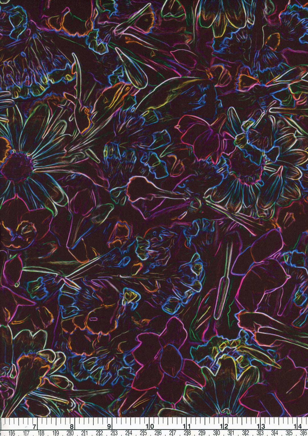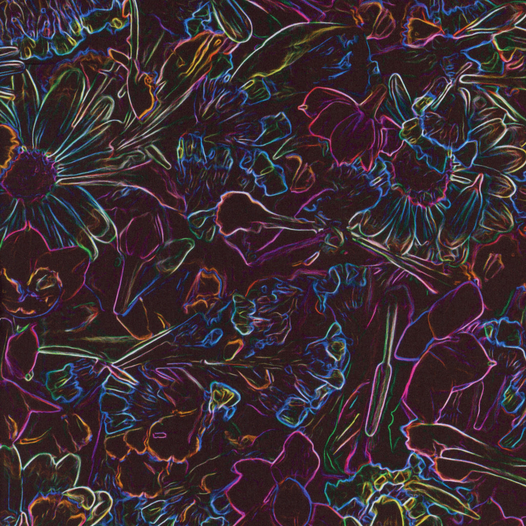 Scanned flowers and petals have been manipulated digitally to create this neon light effect as a new take on a modern textural photographic floral design.