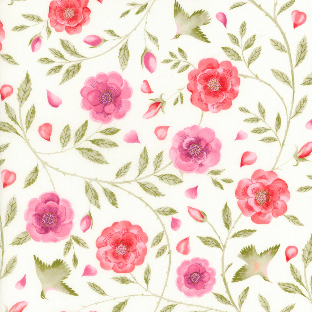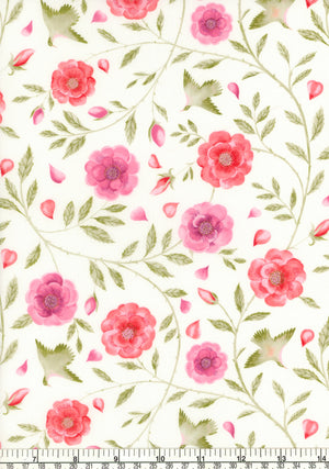 Hand-painted by acclaimed children’s book author and illustrator Jane Ray, this design was created for Liberty following research into the German fairy tale of ‘Snow-White and Rose-Red’. Enchanting birds soar across a bright trailing garden, while delicate washes of colour give life to beautiful briar roses.