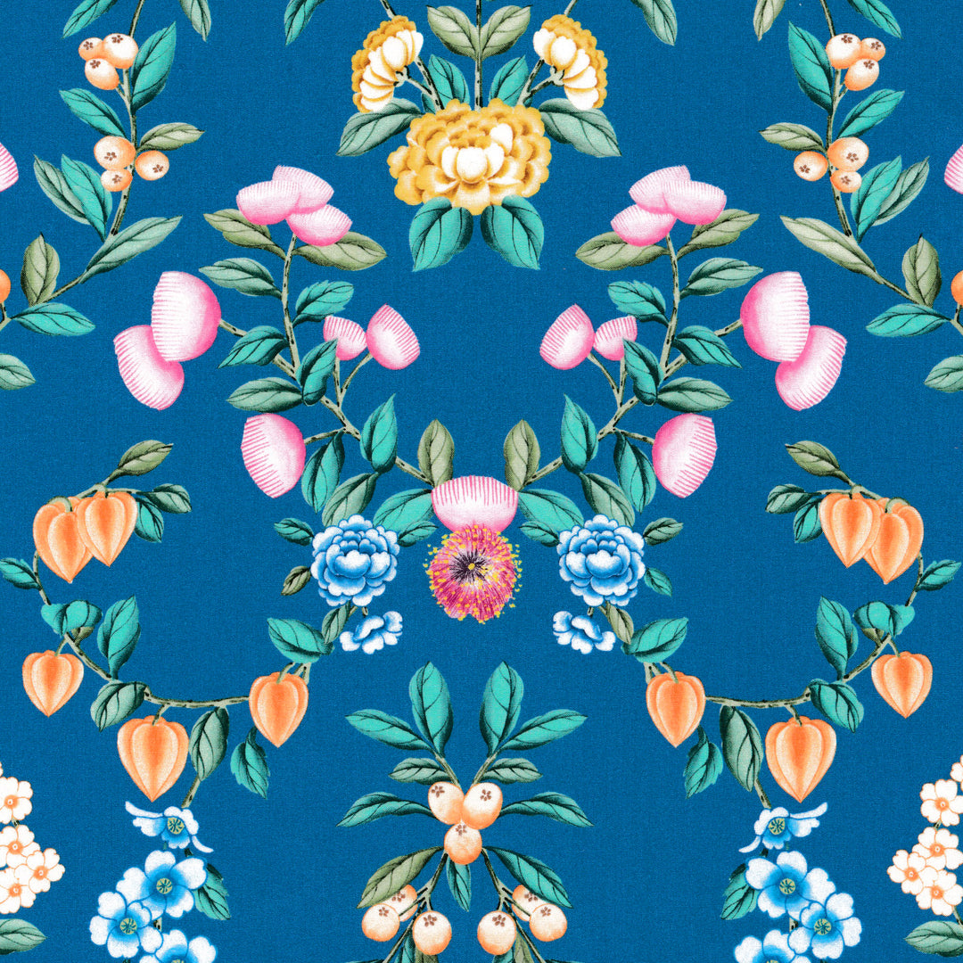 "Exclusively designed for Liberty by Emile & Chen, a Shanghai-based wallpaper studio, Eastern Trellis is a refreshingly contemporary interpretation of a traditional Chinoiserie pattern. Using hand crafted techniques, it was painstakingly illustrated on metallic silk paper and reworked by the Liberty studio into a romantic trellis decorated with blossom, berries, peonies and Chinese physalis."