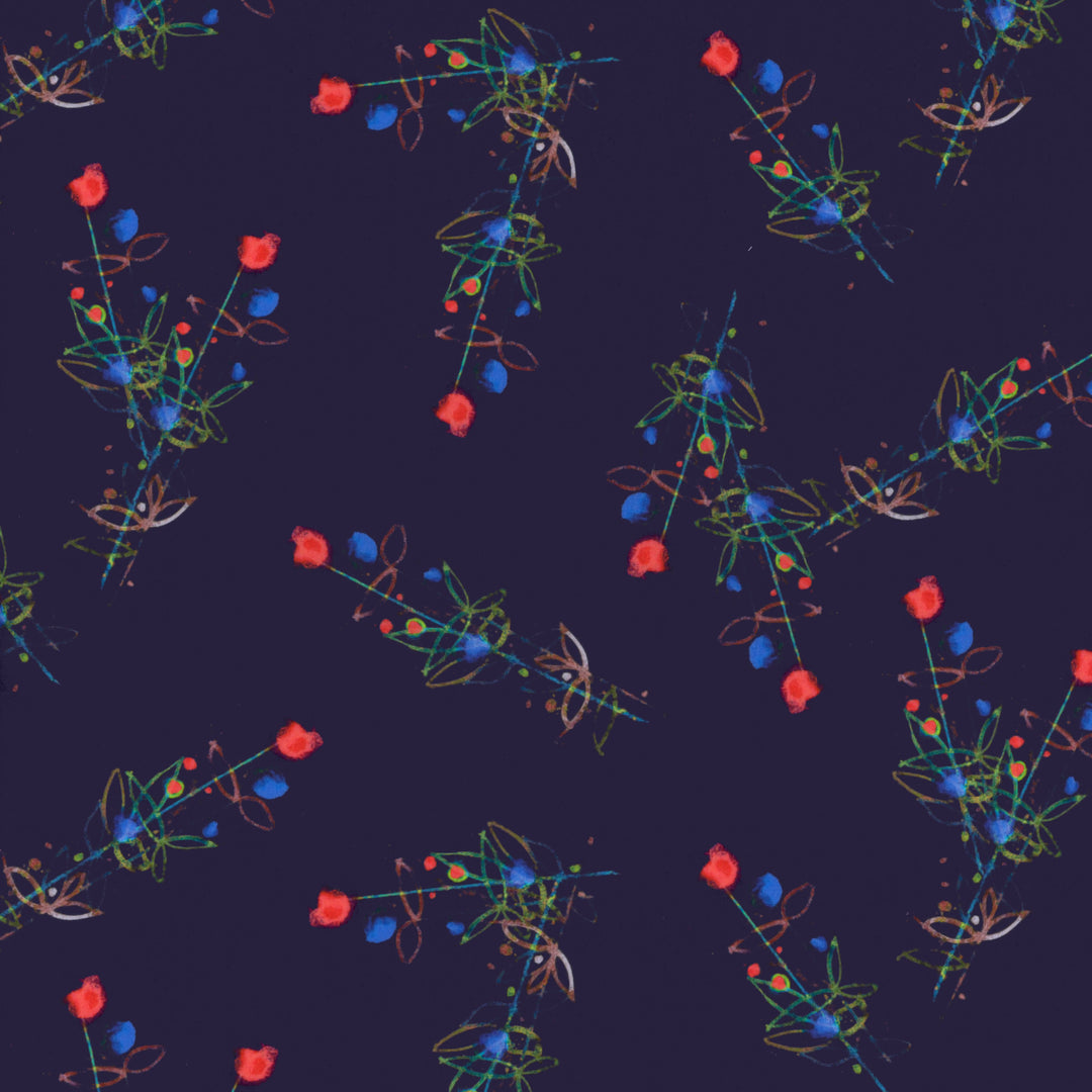 Using an exquisite watercolour technique possibly inspired by Eastern or early Italian paintings, these delicate rose stems have been taken from Wildsmith’s book “The Little Wood Duck” published in 1972. The Liberty Design Studio were drawn to the simplicity of the carefully considered elements that comprise the floral motif; the suggestive leaf outlines and the charming circular flower heads. There is something naive yet at the same time supremely sophisticated about this design, compromising of a multidirectional repeat of tumbling rose stems.