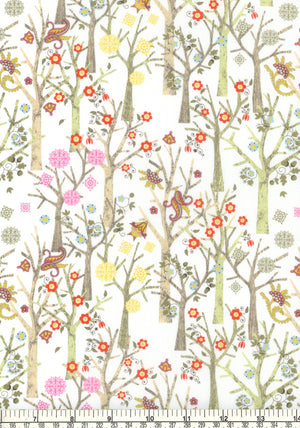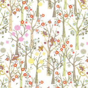 Tuesday Trees is an original design created in 2009 by multi award-winning children’s author and illustrator Lauren Child CBE. Inspired by Lauren’s illustration of the much loved fictional character ‘Clarice Bean’, this joyful print combines fragments of archival Liberty patterns, together with delicately textured trees. A beautifully assembled and collaged Liberty fairy tale forest!