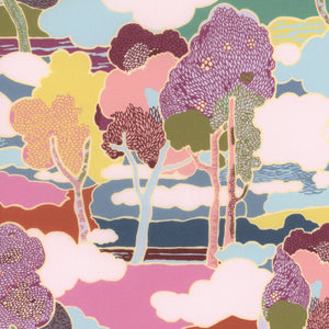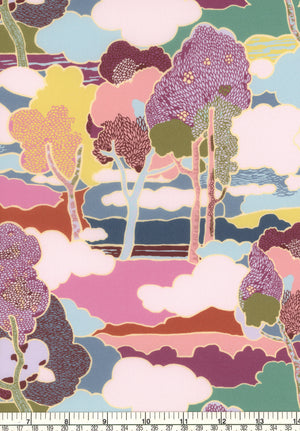 Prospect Road is an archival classic, based on a Liberty design from 1968. A revival of traditional Art Nouveau landscape prints, it features subtly arranged clusters of trees in a dreamy, jewel-toned setting.