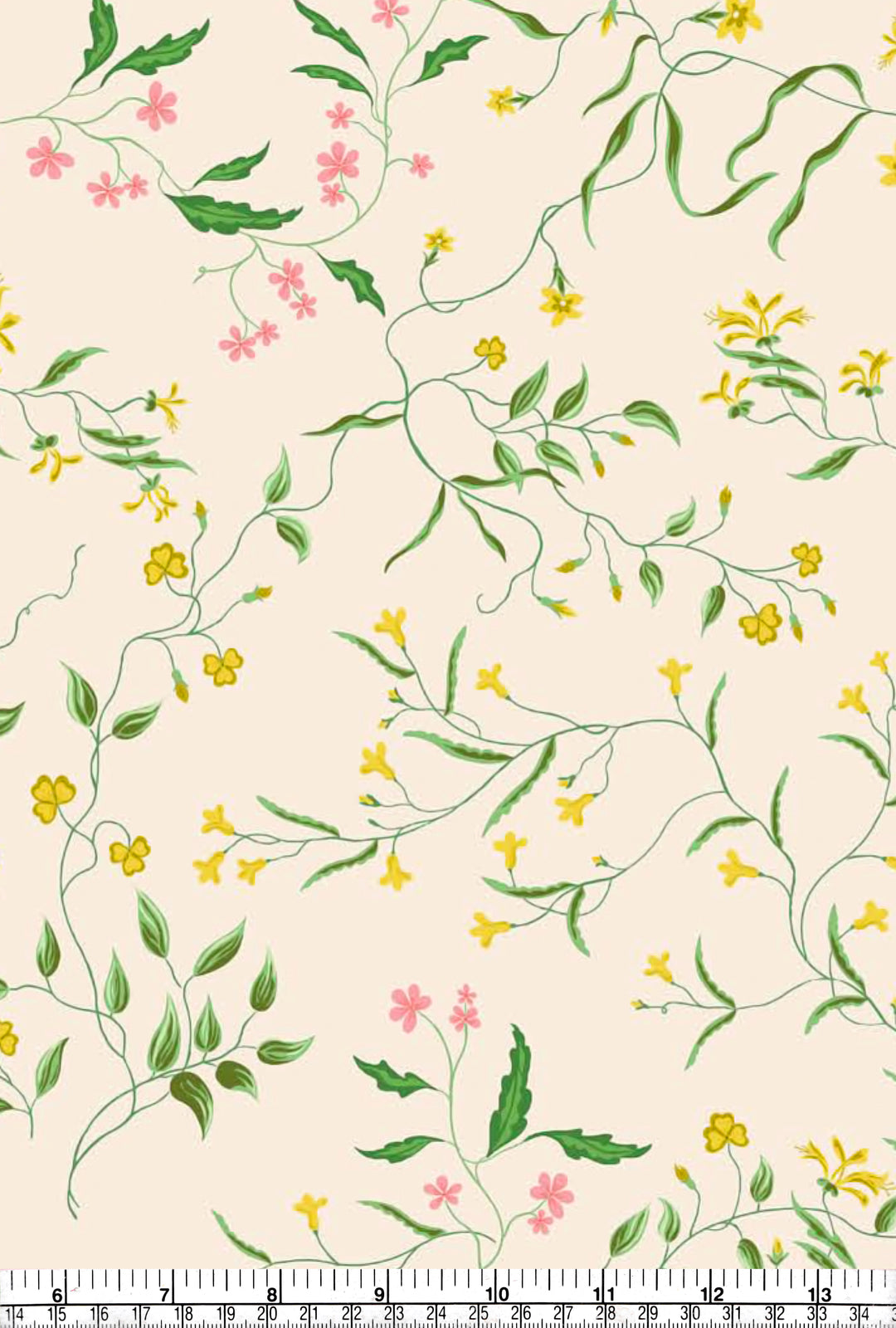 Regal Blossom draws inspiration from the smallest hand-painted vignettes found within the pages of a Liberty pattern book dating from the 1840s – 1860s. Imaginatively reinterpreted in the Liberty design studio, this exquisitely delicate botanical is reminiscent of typical Regency-era printed fabrics. Feather-light and ethereal, its dainty flowers sway in a windswept motion, brought to life by fragile tendrils, meandering leaves, and trailing vines.