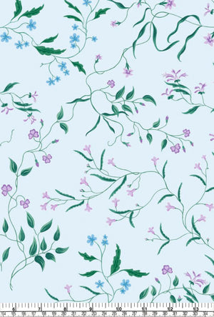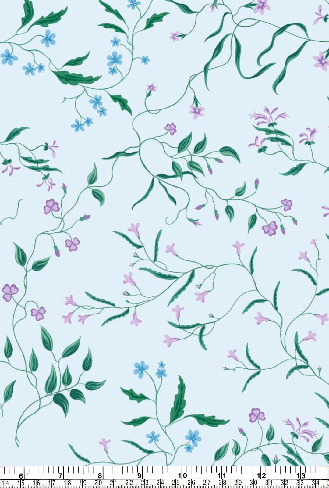 Regal Blossom draws inspiration from the smallest hand-painted vignettes found within the pages of a Liberty pattern book dating from the 1840s – 1860s. Imaginatively reinterpreted in the Liberty design studio, this exquisitely delicate botanical is reminiscent of typical Regency-era printed fabrics. Feather-light and ethereal, its dainty flowers sway in a windswept motion, brought to life by fragile tendrils, meandering leaves, and trailing vines.