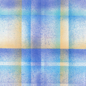Inspired by humanity’s earliest artworks, found in Spain’s El Castillo Caves, this design features spray-painted strips formed together into an overall plaid textural design.
