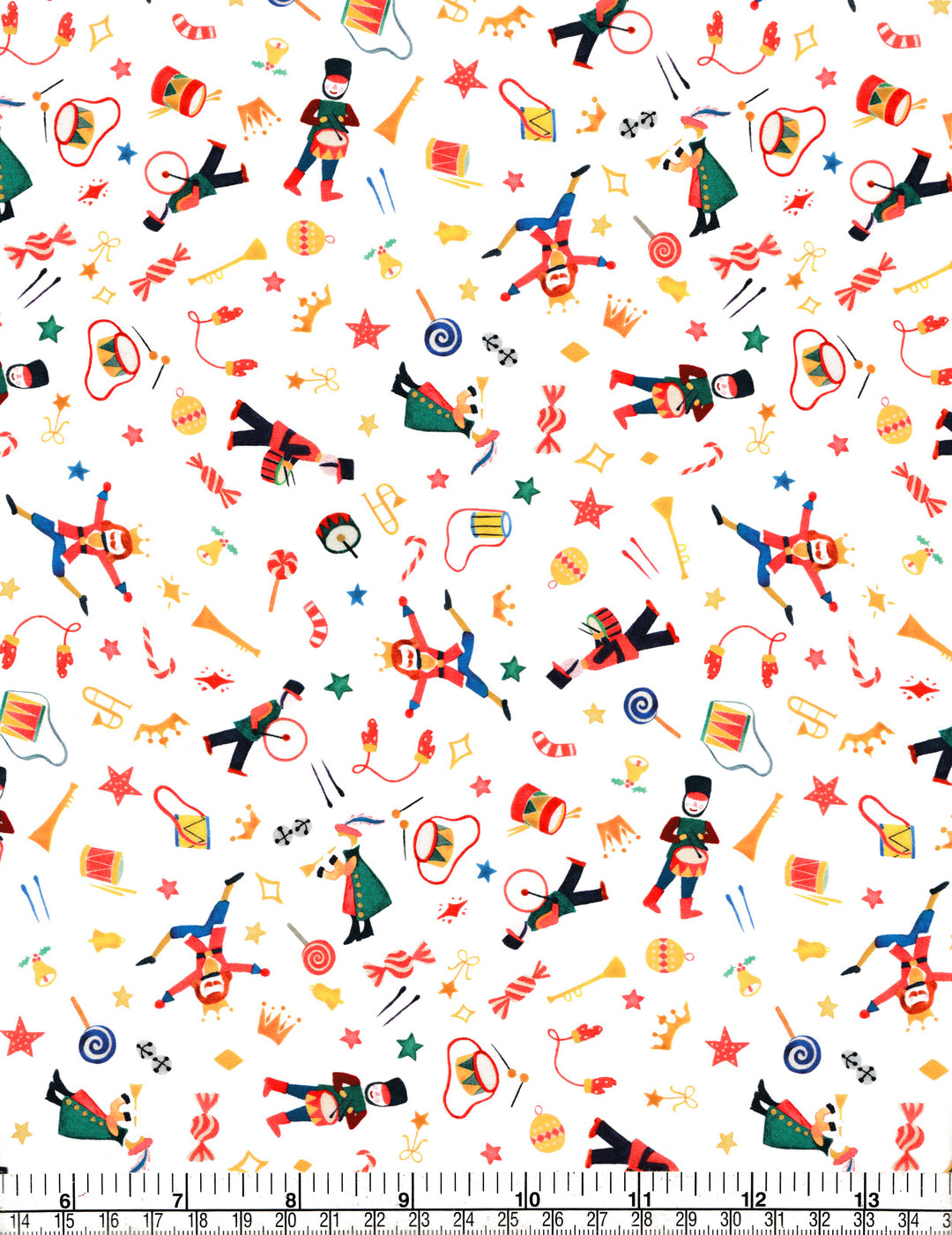 Conjuring up the fun and excitement of the season, Tumbling Toys is a lively conversational print inspired by traditional folk art. A myriad of sweets, toys and stars are interspersed with cascading drummers, musical instruments and leaping lords in this festive extravaganza.