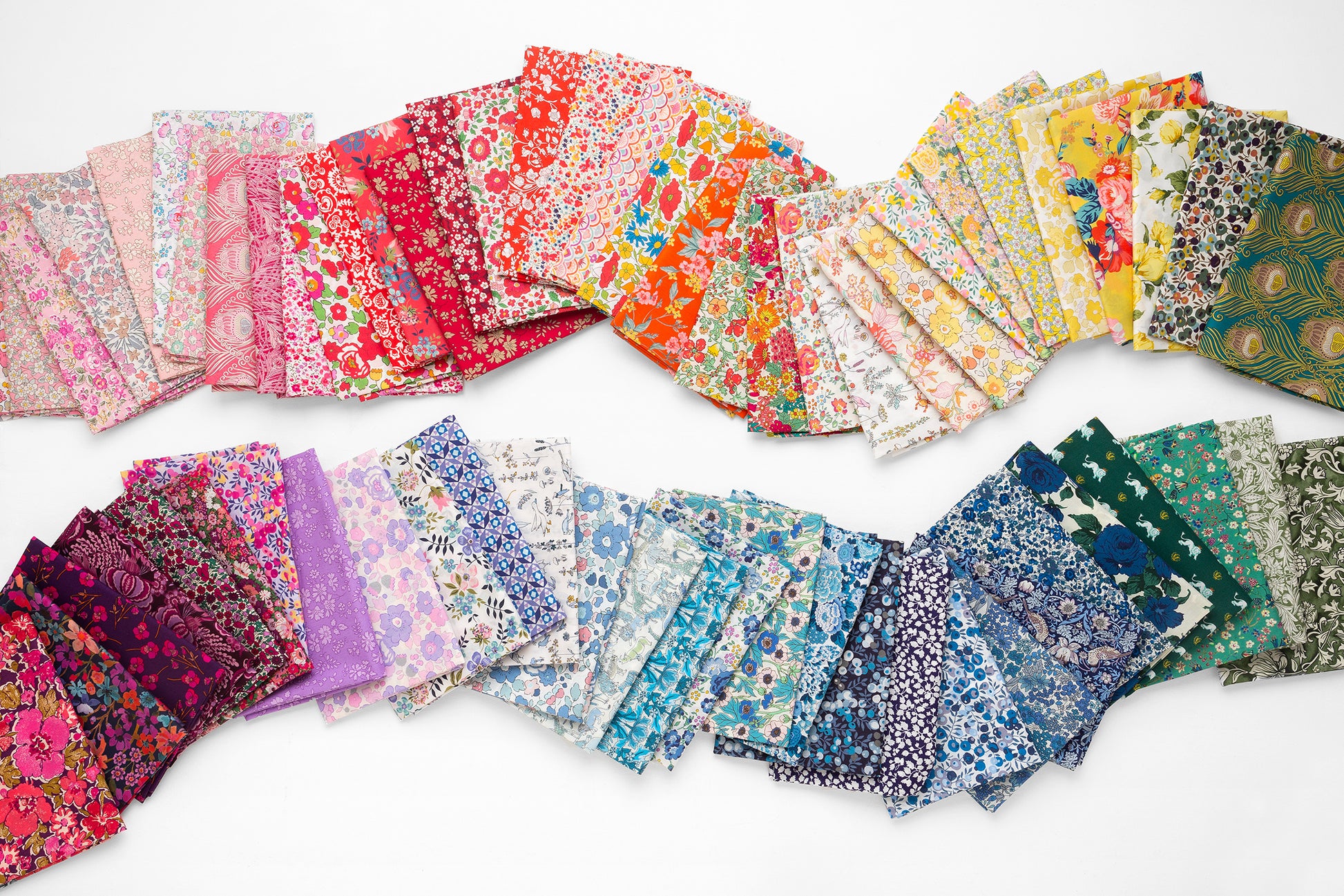 Our Rainbow Stash Packs are a beautiful selection of classic and seasonal prints. Perfect for quilting and small projects. Choose from 25, 50, 75, or 100 piece bundles.