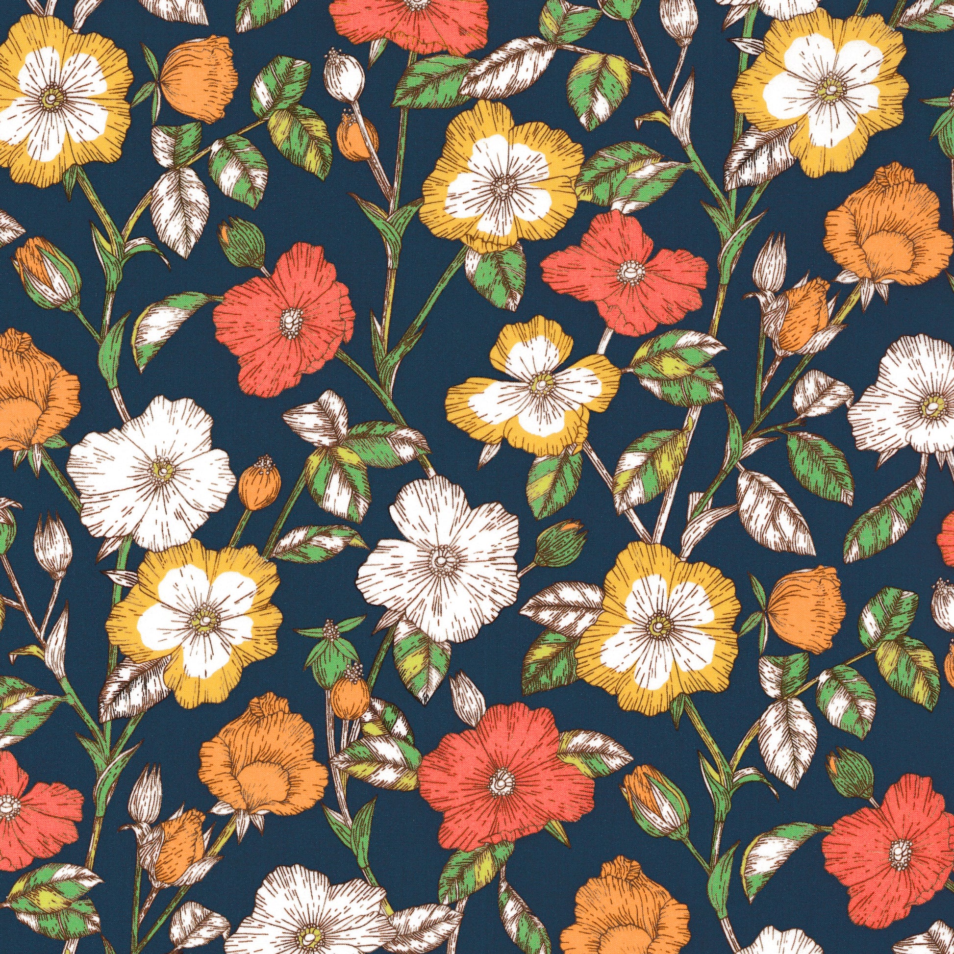 "Designed in-house exclusively for the Summer Bloom capsule collection, Wild Petals depicts a stunning array of Dainty Bess roses. Using fine liner pen with added layers of soft and vibrant colours, the beautiful fluttering petals come to life- as if moving in tandem with the sun’s life-giving rays."