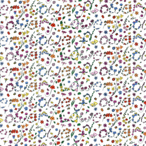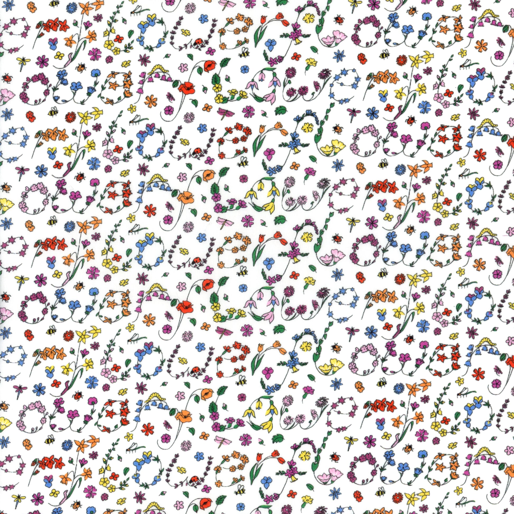 From afar this design looks like a traditional ditzy but if look up close you can see the word flower has been repeated seamlessly across the fabric. Each letter has been made up of a different country floral including buttercups, tulips and forget me knots.