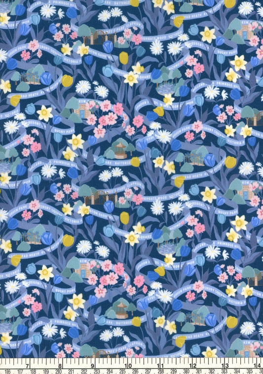 The intricately illustrated London collection is an ode to the beauty of the bustling capital city, home to the iconic Liberty flagship store and its world-renowned design studio. Discover marching regiments exploring the city’s historical architecture and stroll through London’s vibrant parks, alive with colorful spring flowers.