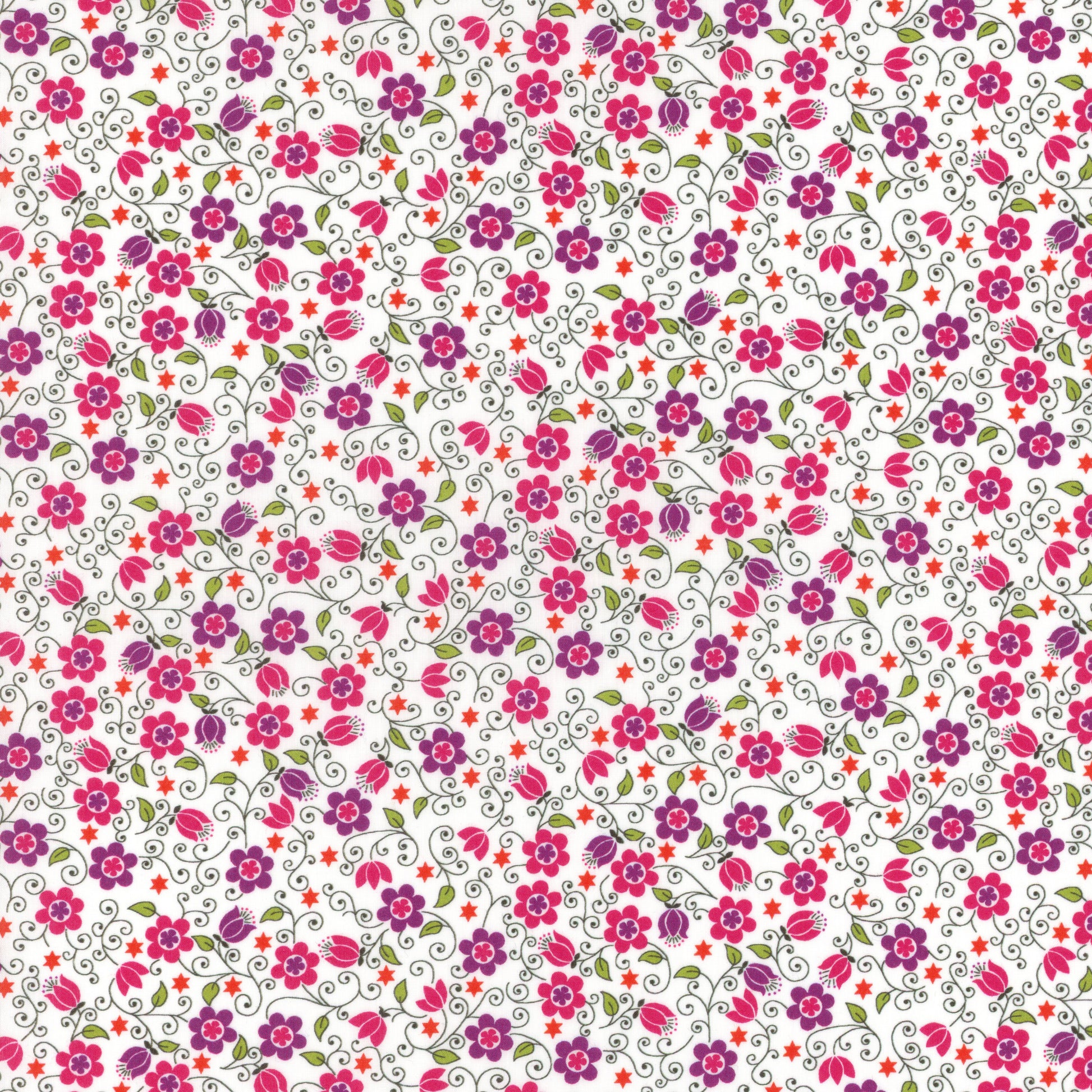 Originally created by the Liberty studio in 1963, this charming design was redrawn and recoloured in an array of vibrant and tonal shades. Featuring small ornamental flowers, tiny stars and scrolling tendrils, Clemmie blooms in subtle retro vibes, creating a seamless floral trail.