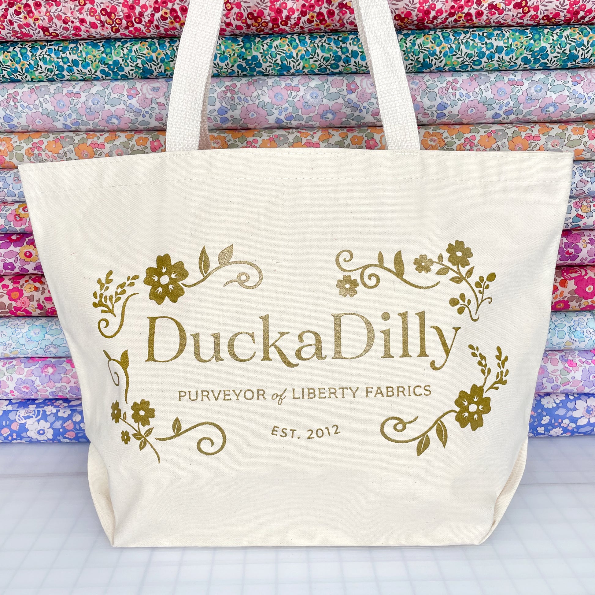 Our DuckaDilly tote bags are printed with subtle metallic print ink on cotton canvas. Our bags are printed locally by VGKIDS.