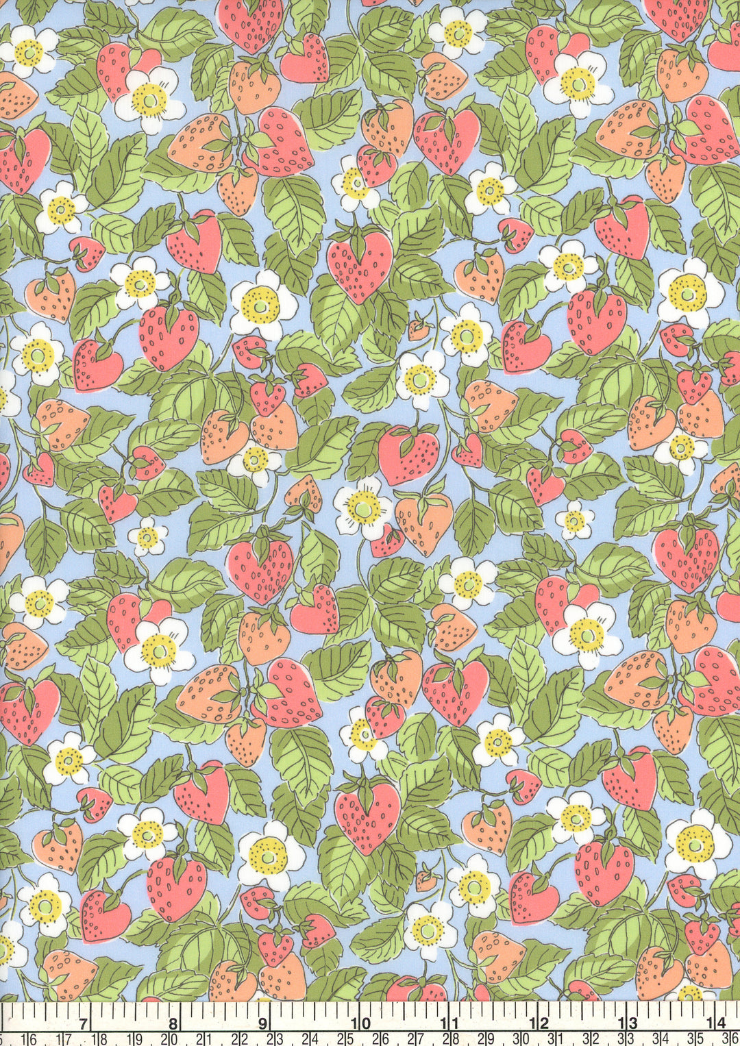 Sweet and juicy heart-shaped strawberries are scattered amongst delicate blossom flowers and pretty leaves in this refreshingly fruity botanical. Originally hand-painted for Liberty in 1961, Strawberry Dream exudes a retro aesthetic and a sense of spontaneity through its loosely sketched illustrations.