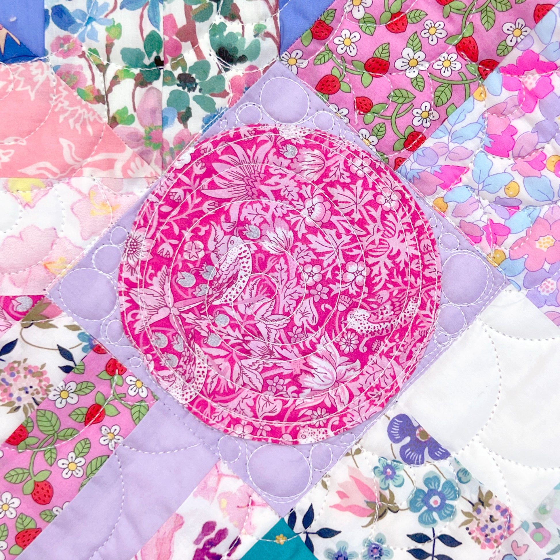 At the heart of your DuckaDoodle Quilt are the fabrics you’ll be using - a carefully chosen palette of pinks, periwinkles, aquas and teals, all in gorgeous Liberty Tana Lawn. They will be the through-line as you explore each month's block, tying your quilt top together in a gorgeous Liberty-stravaganza! The DuckaDoodle fabrics also feature touches of both neon and metallic.