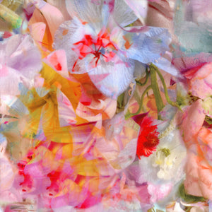 This design was inspired by the frozen botanical sculptures of Azuma Makoto . He is a Japanese artist who has flown a colourful bouquet into space, submerged them in water and also preserved them in ice. Roses, dahlias, petunias, delphiniums and butterfly ranunculi’s were submerged in water and frozen and the photos take were collaged together to create this wintery photographic design.
