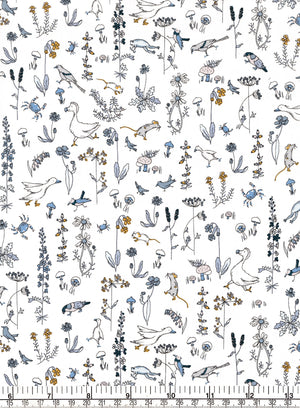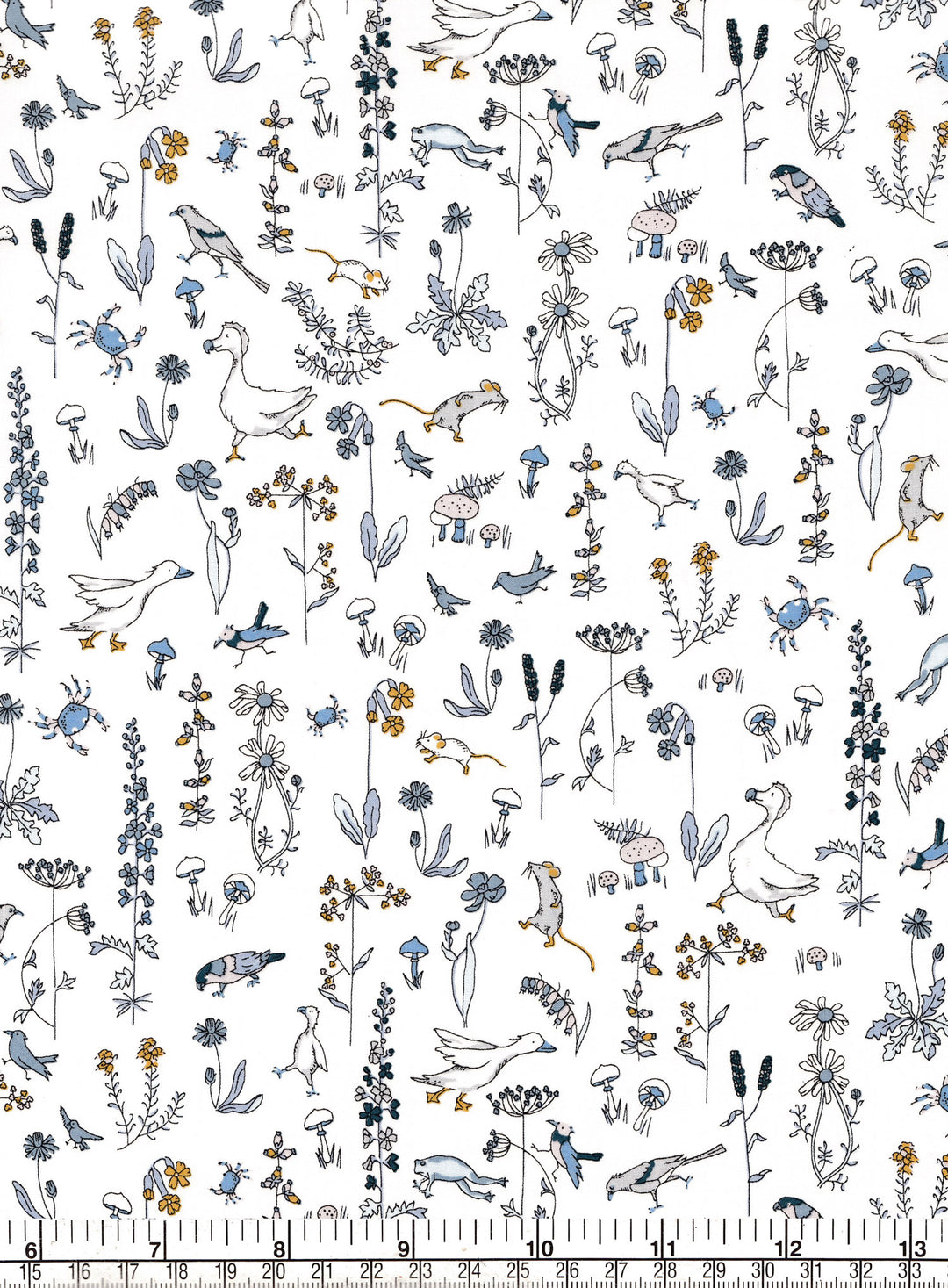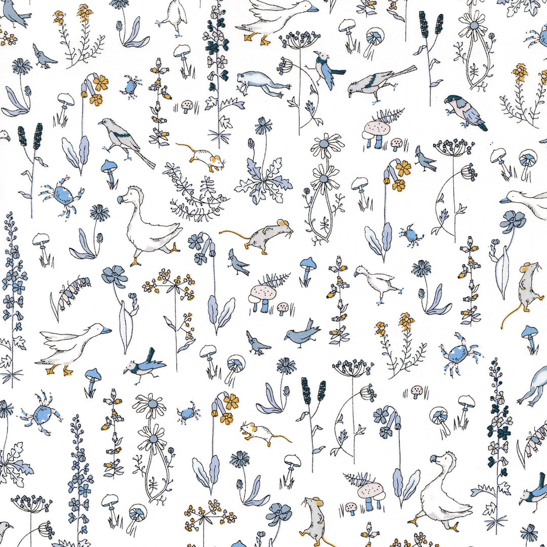 Theo is a hand-drawn conversational print created by Tamara de Peon for Liberty Fabrics, inspired by Lewis Carroll’s beloved classic Alice’s Adventures in Wonderland. The design incorporates colourful creatures running pell-mell around the fabric as if part of the Caucus Race.