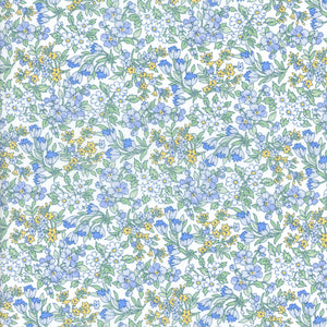 Inspired by a hand-painted artwork from the Liberty archive dating back to 1989, Nazanin features a delicate floral posy. This composition weaves together a tapestry of meadow blooms, including daisies, roses, and bell flowers, creating a delightful dance of romantic, Regency-style botanicals.